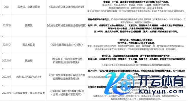 2021年末,中国东谈主民银行等多个政府部门发布了《成渝共建西部金融中心揣度》,该揣度提议成渝双城主张在 2025 岁首步建成西部金融中心,到 2035 年地位愈加安逸为主张,为成渝地区双城经济圈竖立提供了详备的蓝图。自 2022 年起,各项四川省级与地方竖立揣度撮要政策纷繁出台,隐私成渝世界级机场群竖立、交通基础法子揣度等多个领域,为成渝地区的全面发展提供全地点因循。