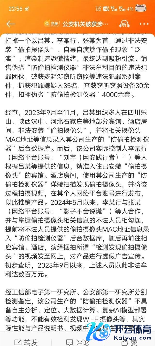 这个团队通过自导自演的形势,不仅得到了无数流量,还借机倾销我方出产的劣质检测仪,据悉依然罪犯赢利数百万元。这让我想起2022年的一份数据:宇宙触及偷拍类犯警案件同比增长35%,其中相当一部分案件王人触及到了这种"双面东说念主"的操作。