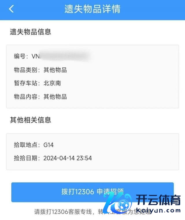 搭客在查对遗失物品无误后,不错使用 12306App、微信小秩序和网站"遗失物品快运载回"功能,不才单页面填写收成东谈主、关连面孔、收成地址等信息,预约快运载回做事。对非禁限运物品,提供"高铁急送"和"庸俗快运"两种站到门物流做事。"高铁急送"应用高铁动车组,可赶走当日或次日投递。"庸俗快运"时效一般为 3-5 天。